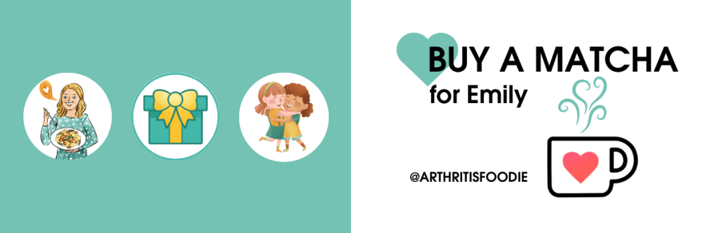 You can buy me a matcha tea, for £5.00 on Ko-Fi… Every virtual matcha does not buy me a real matcha, but is a £5.00 donation to support new and exciting plans for Arthritis Foodie: practical tools, content, resources and more.